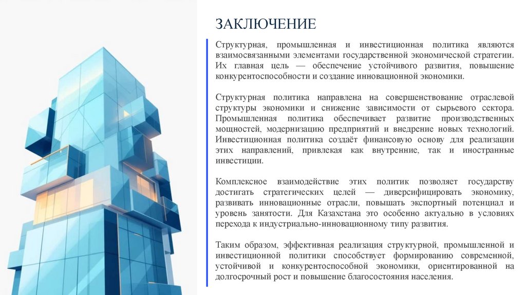 ЗАКЛЮЧЕНИЕСтруктурная, промышленная и инвестиционная политика являются