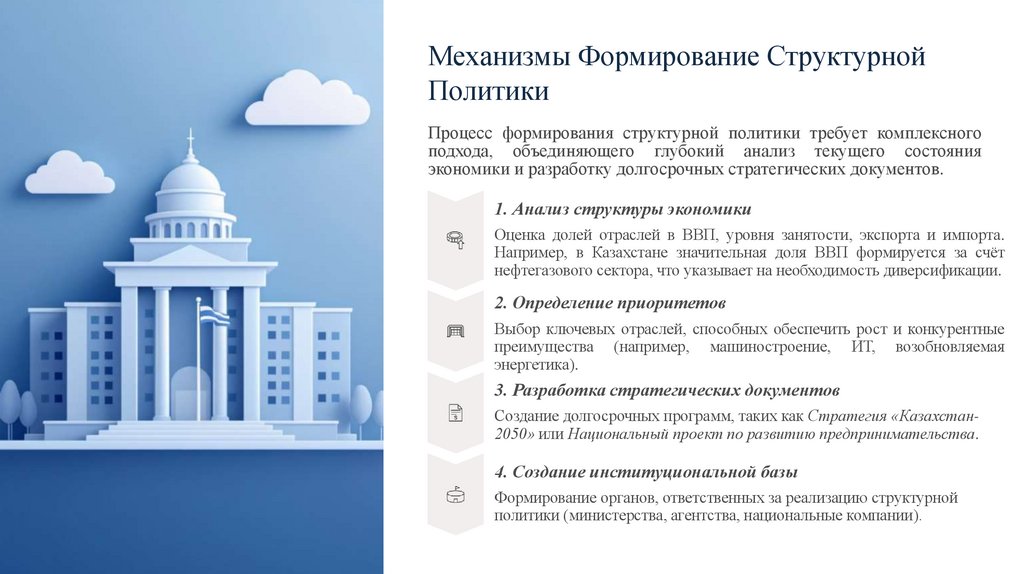 Механизмы Реализации Структурной ПолитикиДля воплощения целей структурной политики государство применяет комплекс экономических, административных и