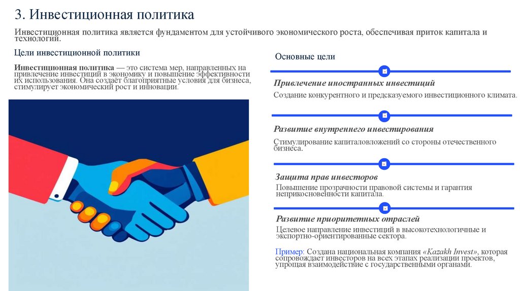 3. Инвестиционная политикаИнвестиционная политика является фундаментом для устойчивого экономического роста, обеспечивая приток капитала и