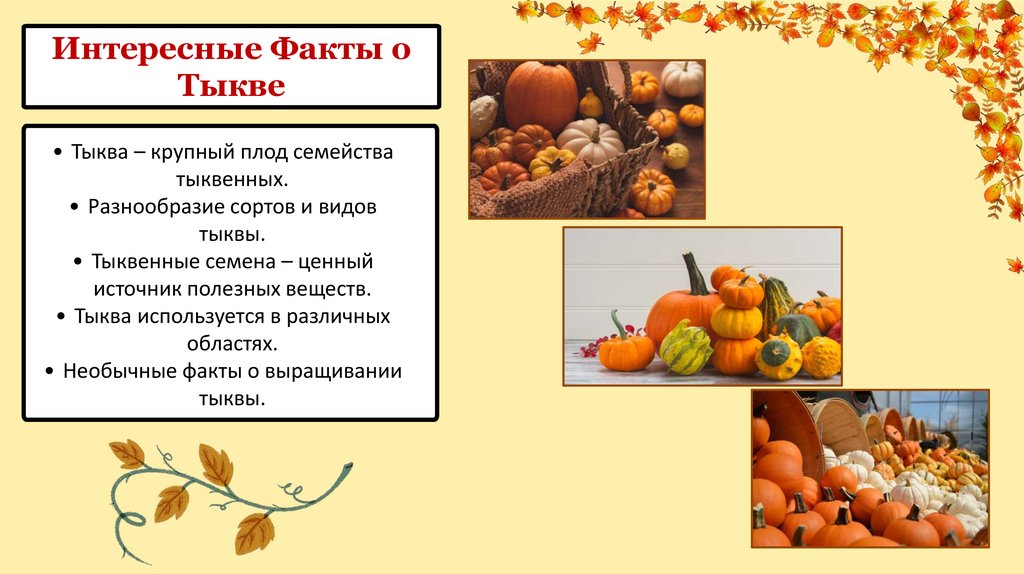 • Тыква – важный элемент