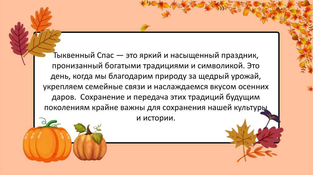Тыквенный Спас — это яркий и насыщенный праздник,пронизанный богатыми традициями и символикой. Это