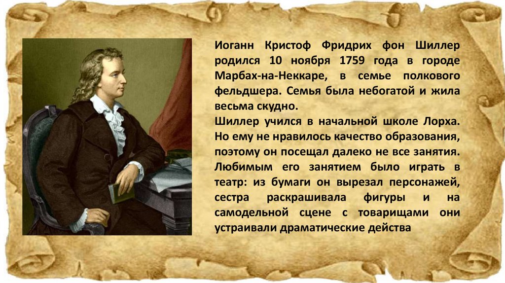 Иоганн Кристоф Фридрих фон Шиллерродился 10 ноября 1759 года в городе