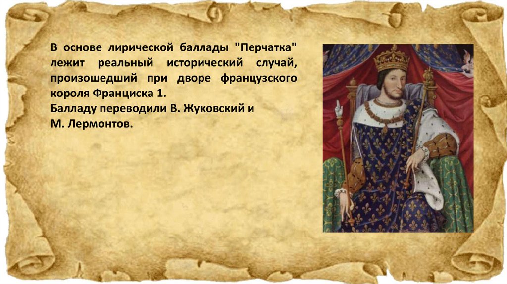 В основе лирической баллады "Перчатка"лежит реальный исторический случай,