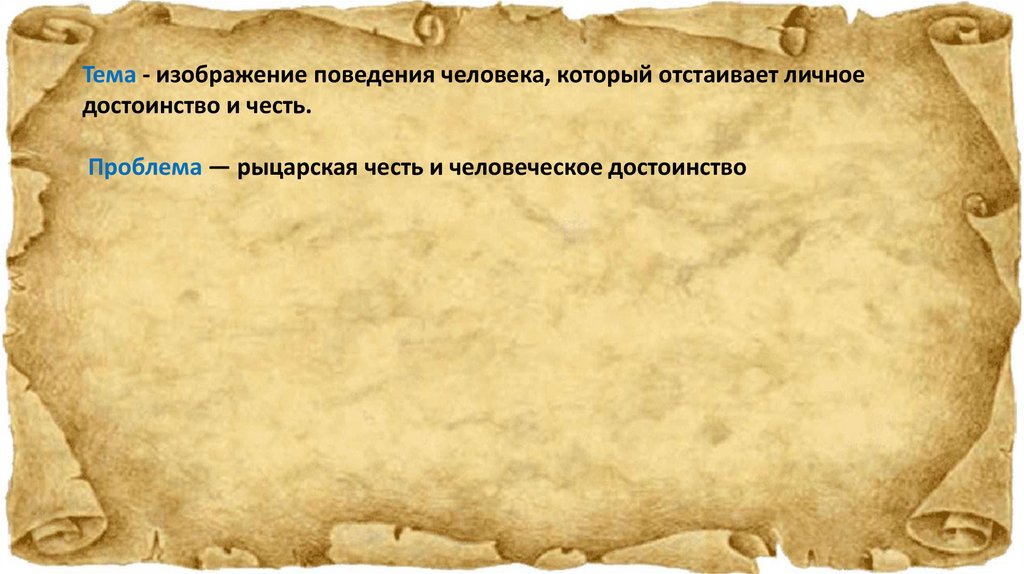 Тема - изображение поведения человека, который отстаивает личноедостоинство и честь.