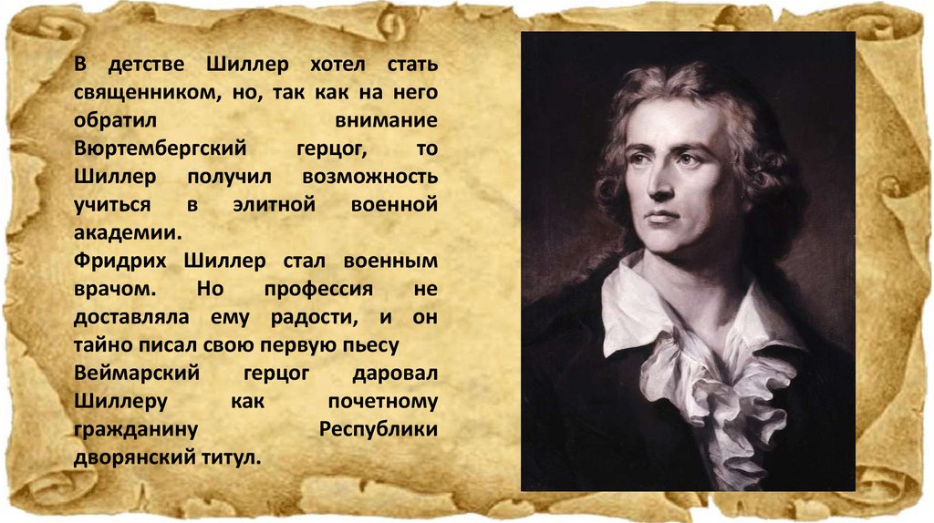 В детстве Шиллер хотел статьсвященником, но, так как на него