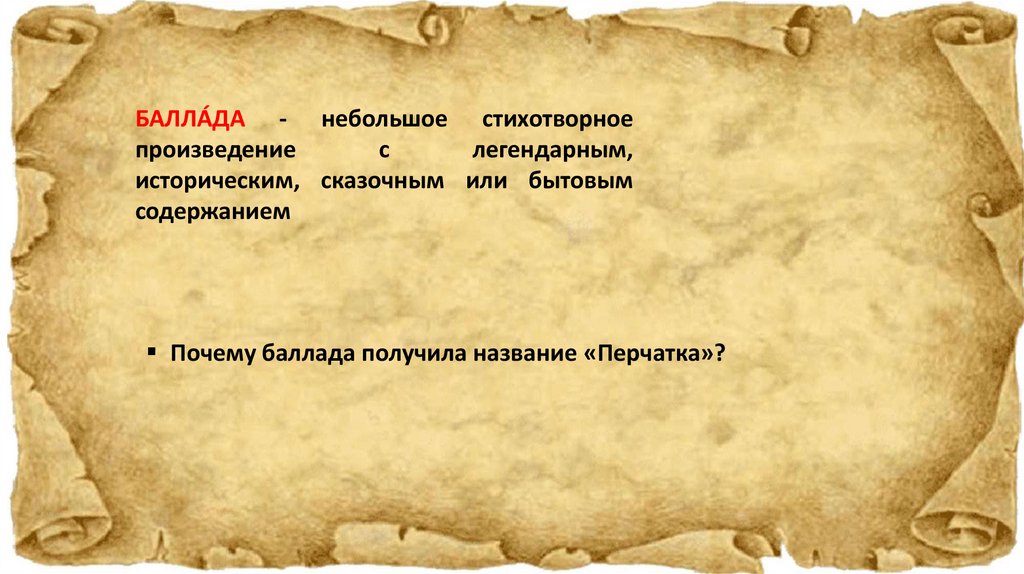 БАЛЛА́ДА - небольшое стихотворноепроизведение