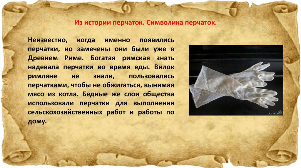 Из истории перчаток. Символика перчаток.Неизвестно, когда именно появились