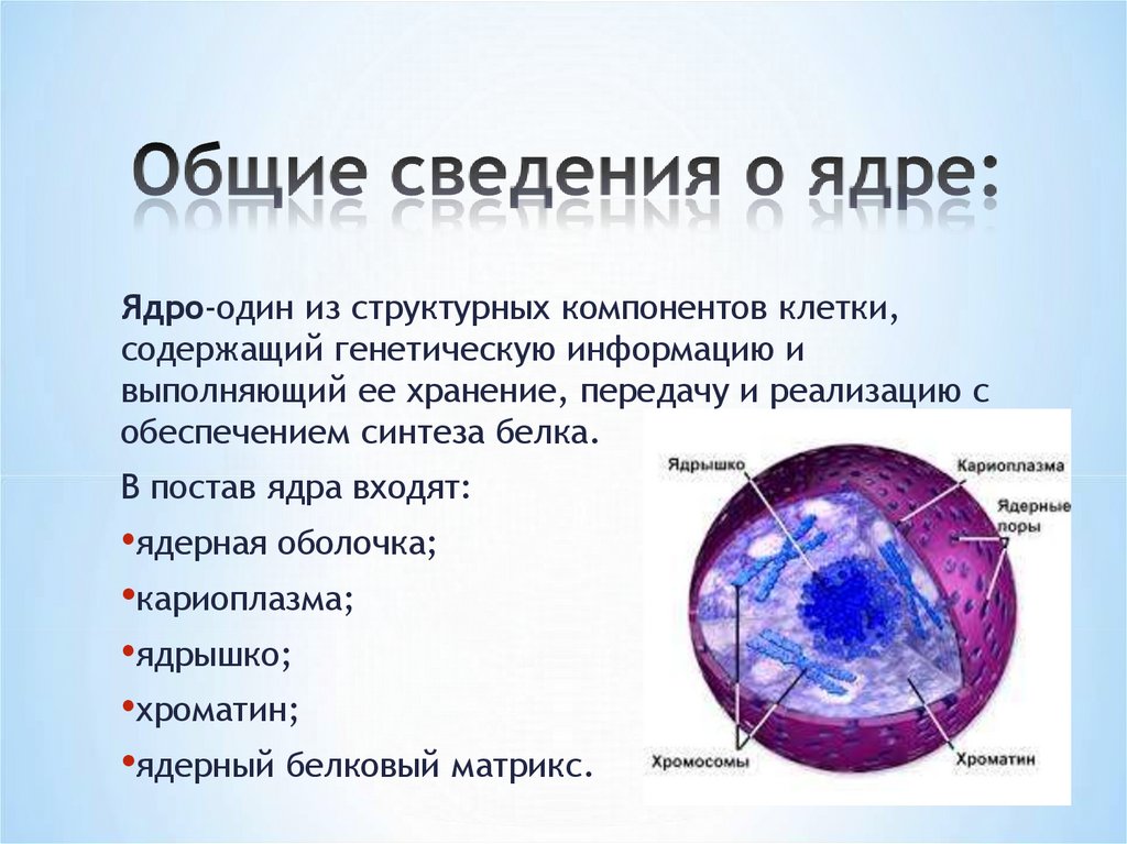 Ядро-один из структурных компонентов клетки,содержащий генетическую информацию и