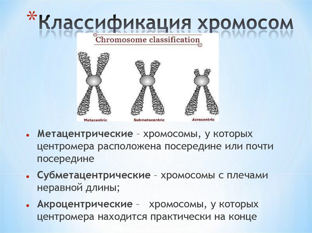 Метацентрические – хромосомы, у которыхцентромера расположена посередине или почти