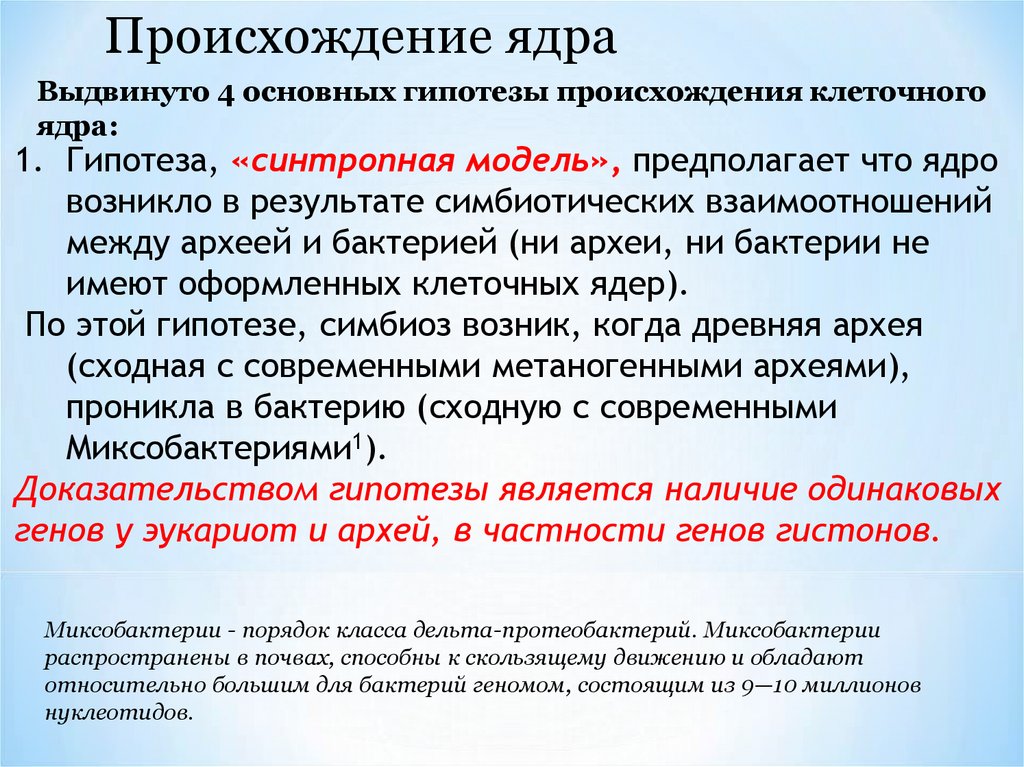 Происхождение ядраВыдвинуто 4 основных гипотезы происхождения клеточного