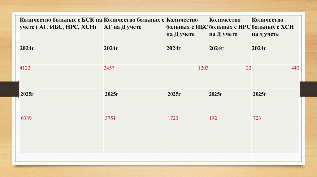 Количество больных с БСК на Количество больных с КоличествоКоличество