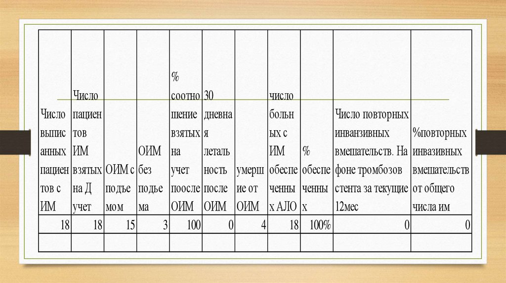 пациен взятых ОИМ с без учет ность умерш обеспе обеспе фоне тромбозов вмешательств