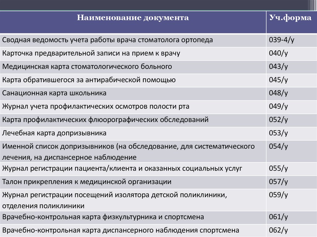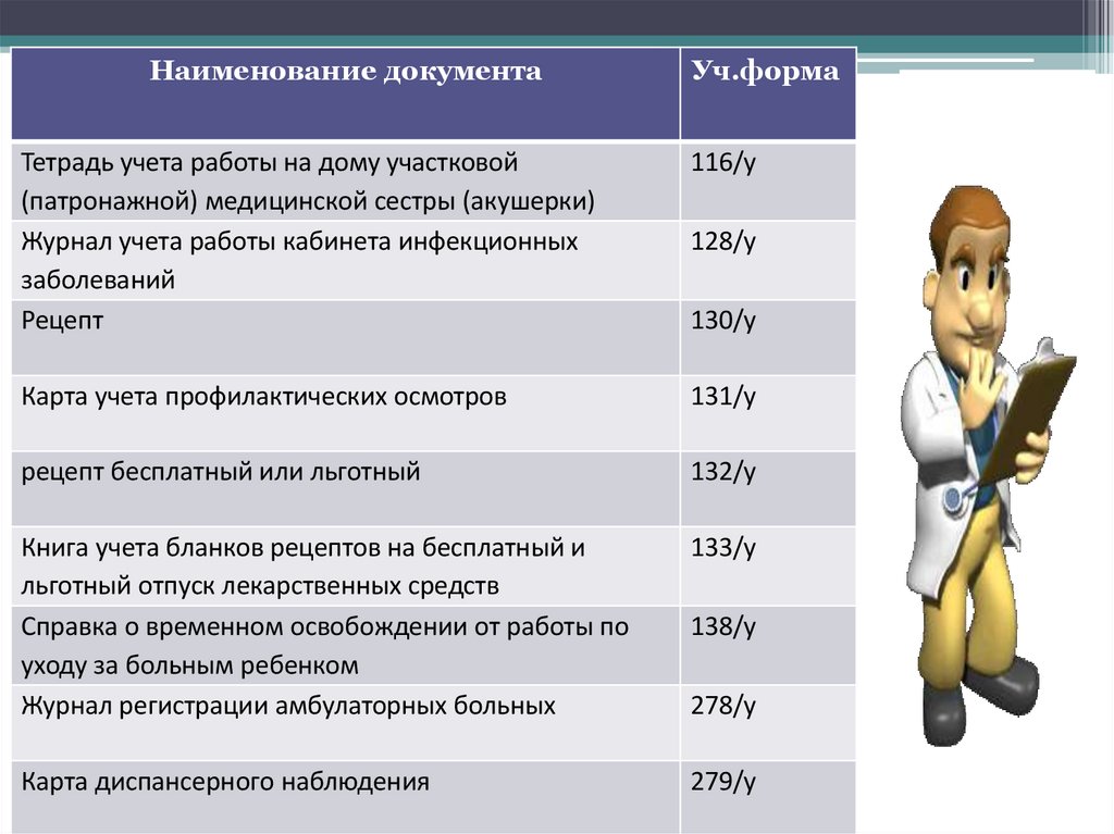 • В поликлинике существует различная учетно-оперативнаямедицинская документация. Ее назначением является помощь