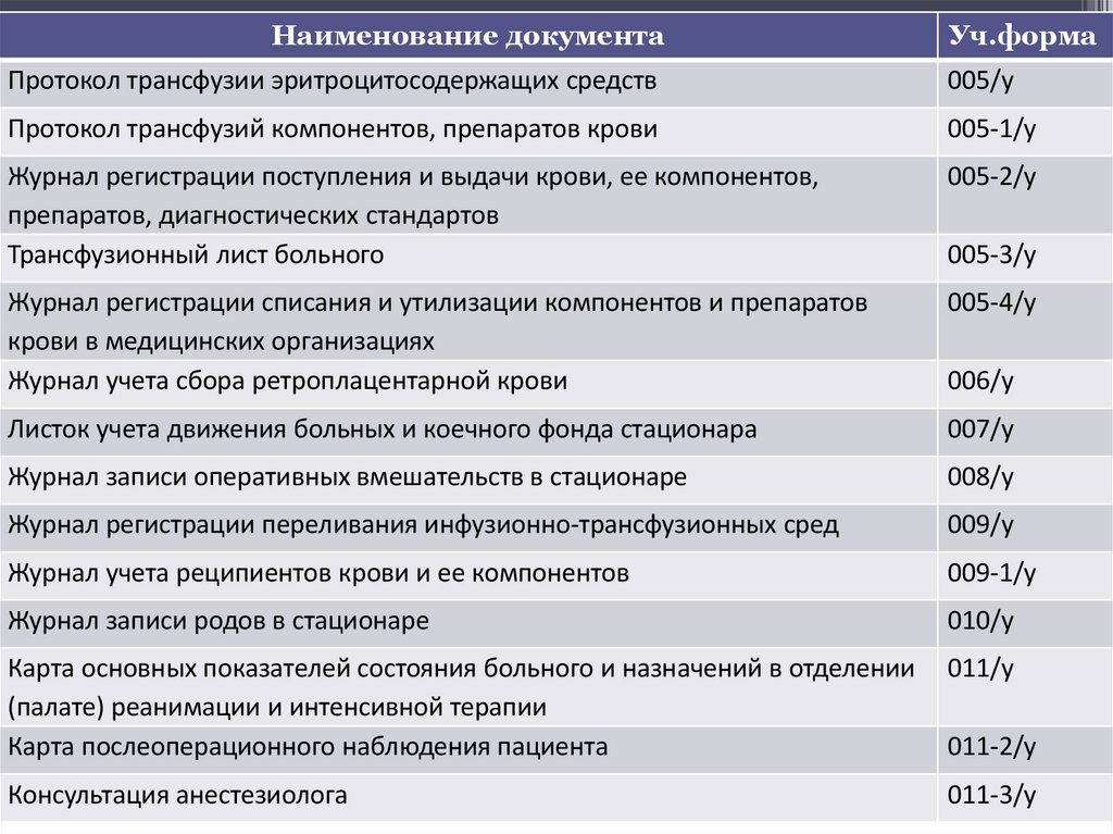 8. Медицинская документация, используемая призаготовке крови и ее компонентов.