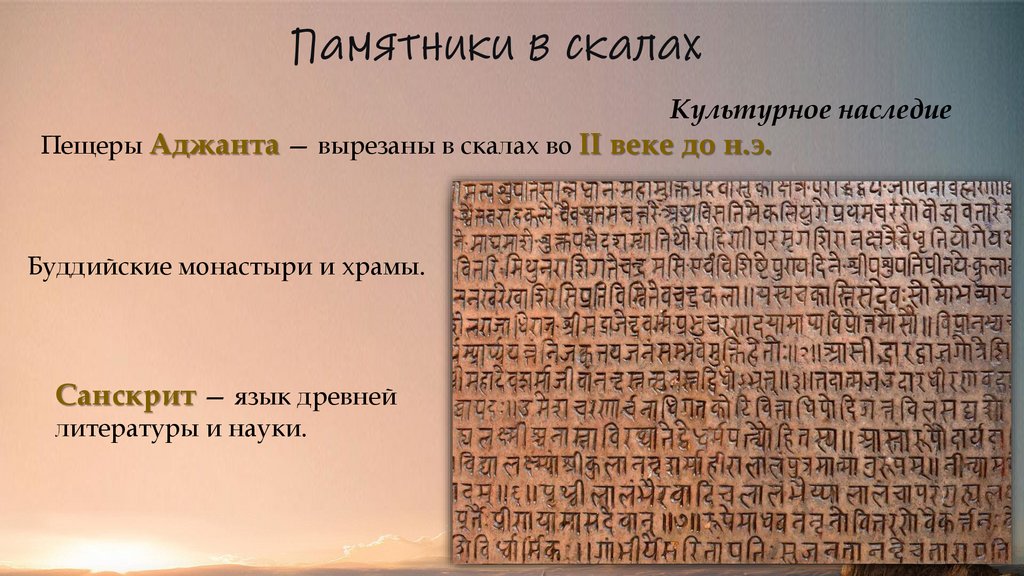 Культурное наследиеПещеры Аджанта — вырезаны в скалах во II веке до н.э.