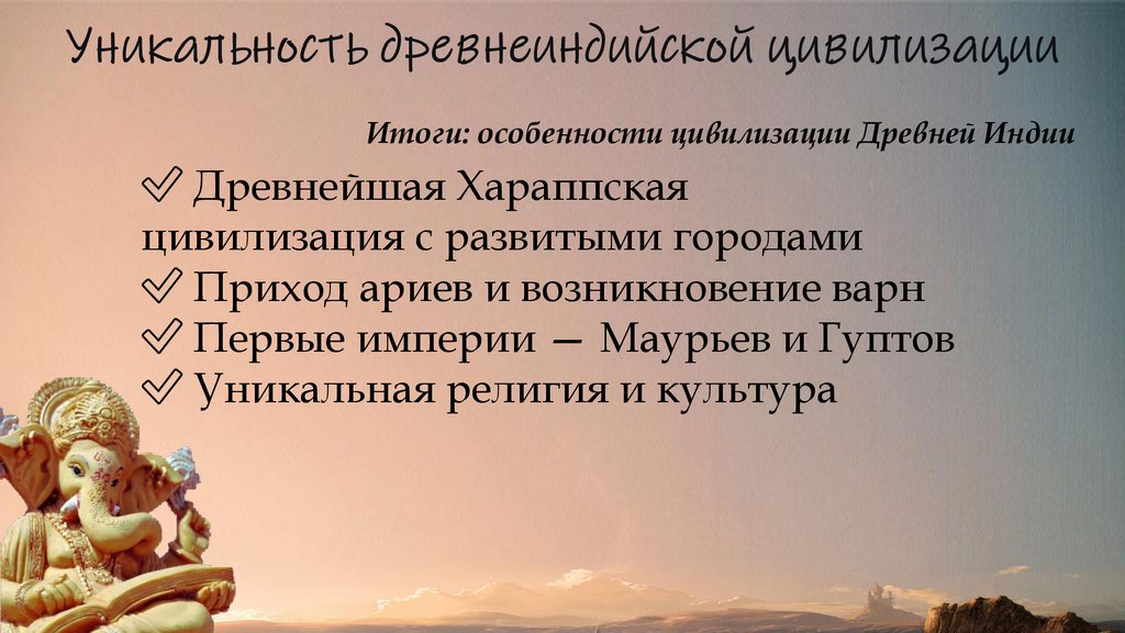 Итоги: особенности цивилизации Древней Индии✅ Древнейшая Хараппская