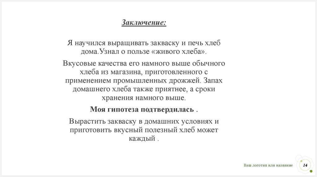 Вывод: приготовить хлеб в домашних условиях с использованием живой