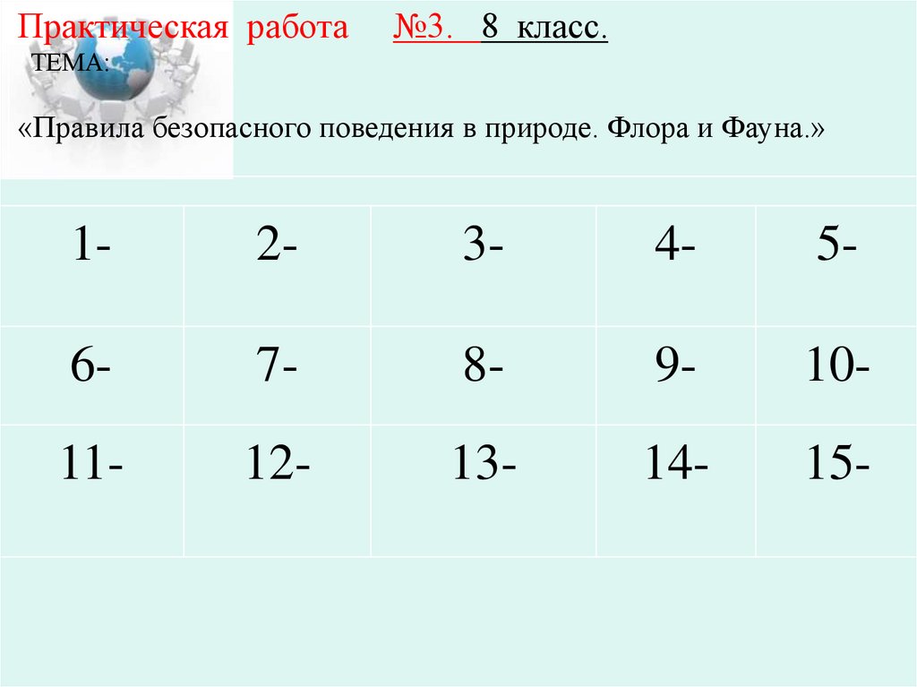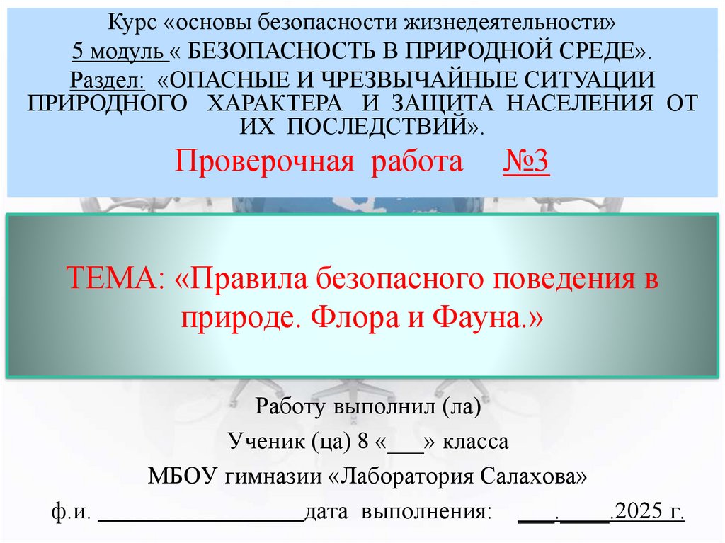 ОБЗР Практическая работа №3 Правила безопасного поведения в природе. Флора и Фауна