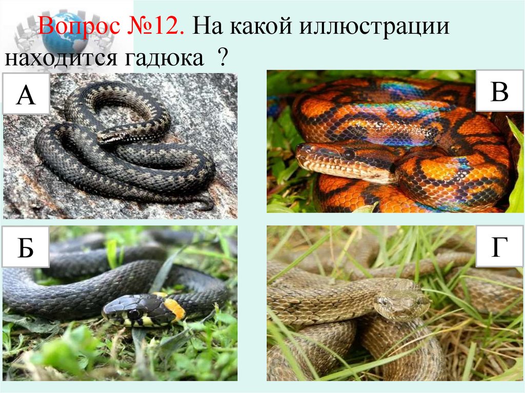 Вопрос №12. На какой иллюстрациинаходится гадюка ?