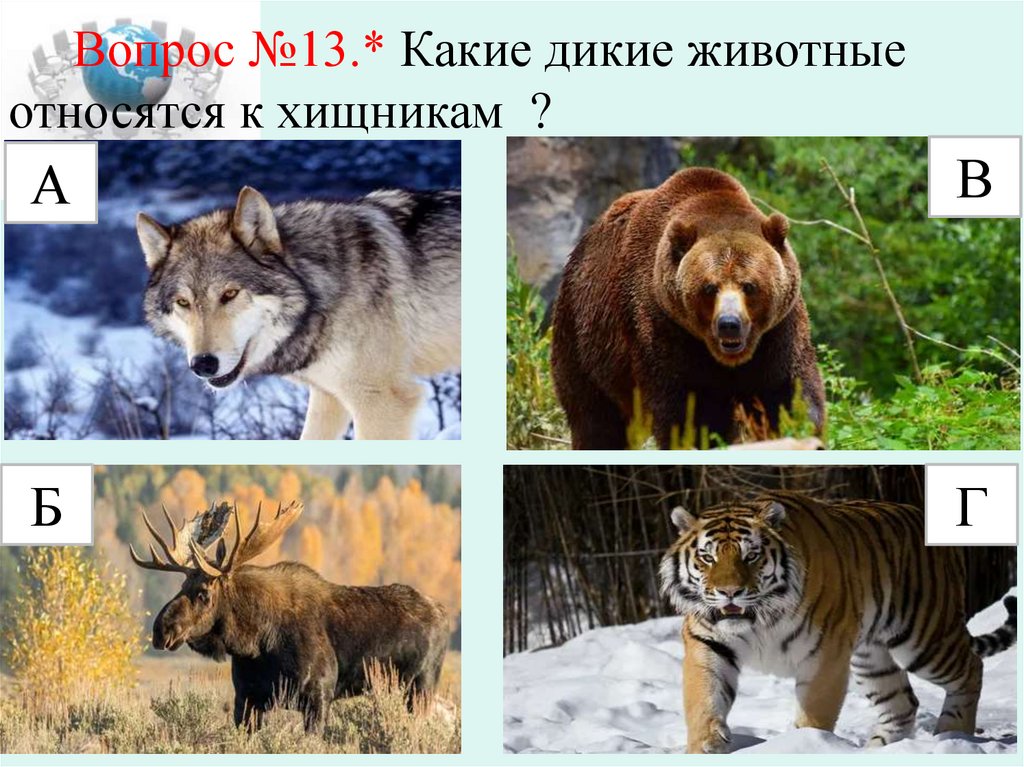 Вопрос №13.* Какие дикие животныеотносятся к хищникам ?