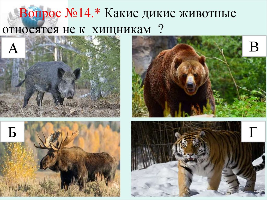 Вопрос №14.* Какие дикие животныеотносятся не к хищникам ?