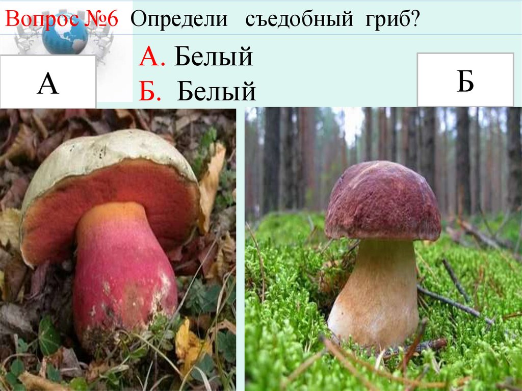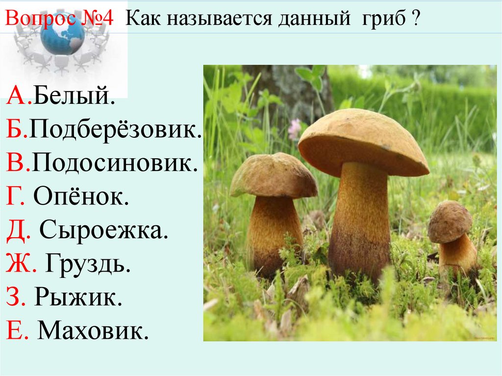 Вопрос №4 Как называется данный гриб ?А.Белый.