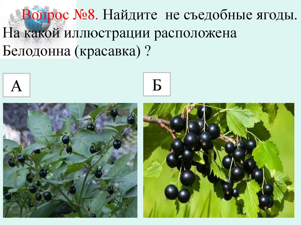 Вопрос №8. Найдите не съедобные ягоды.На какой иллюстрации расположена