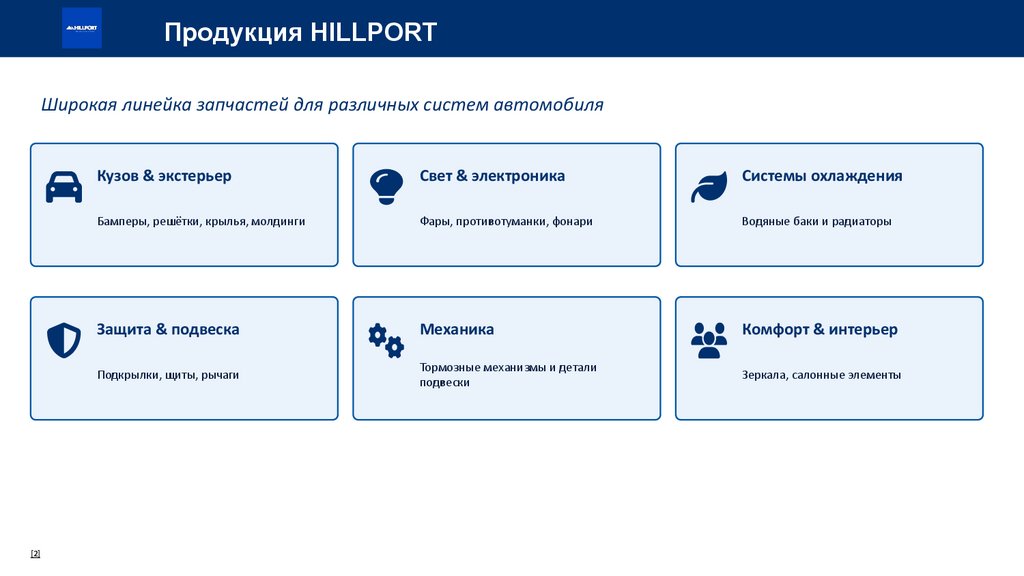 Продукция HILLPORTШирокая линейка запчастей для различных систем автомобиля