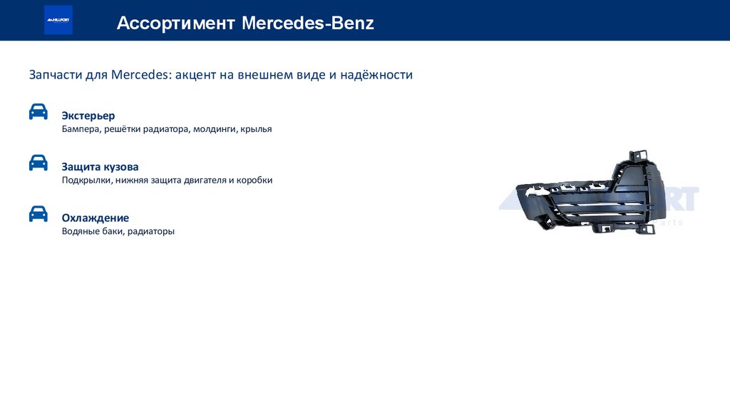 Ассортимент Mercedes-BenzЗапчасти для Mercedes: акцент на внешнем виде и надёжности