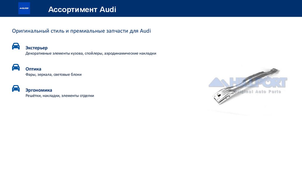 Ассортимент AudiОригинальный стиль и премиальные запчасти для Audi