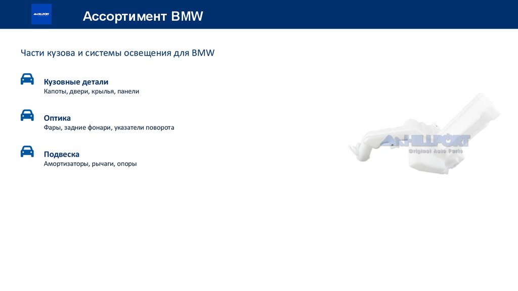 Ассортимент BMWЧасти кузова и системы освещения для BMW