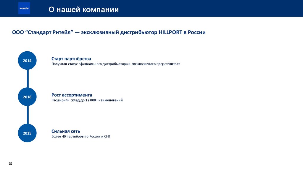 О нашей компанииООО “Стандарт Ритейл” — эксклюзивный дистрибьютор HILLPORT в России