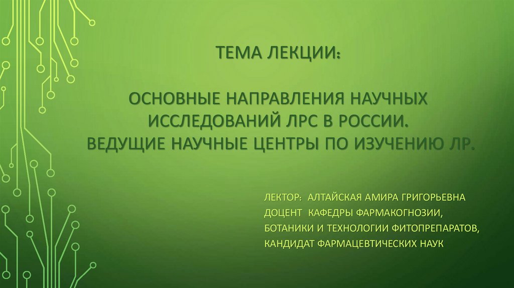 1. Тема ЛЕКЦИИ: Основные направления научных исследований ЛРС в России. Ведущие научные центры по изучению ЛР.