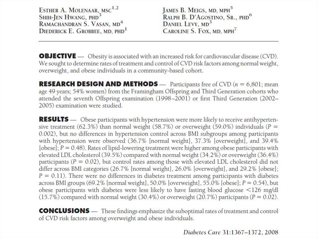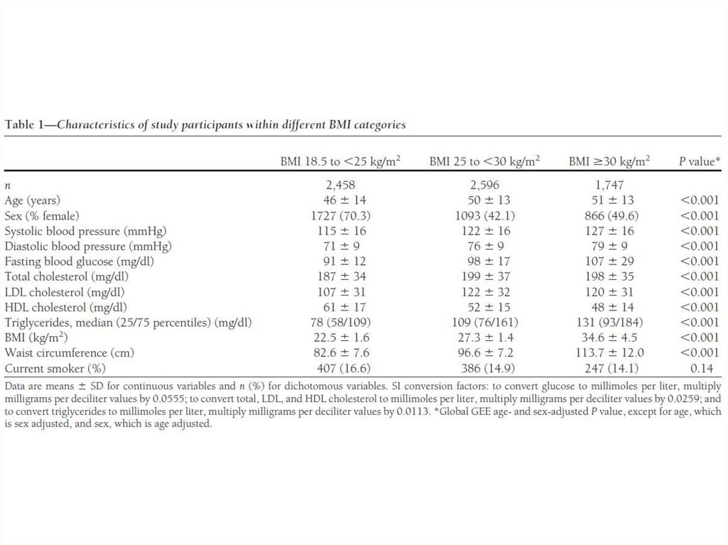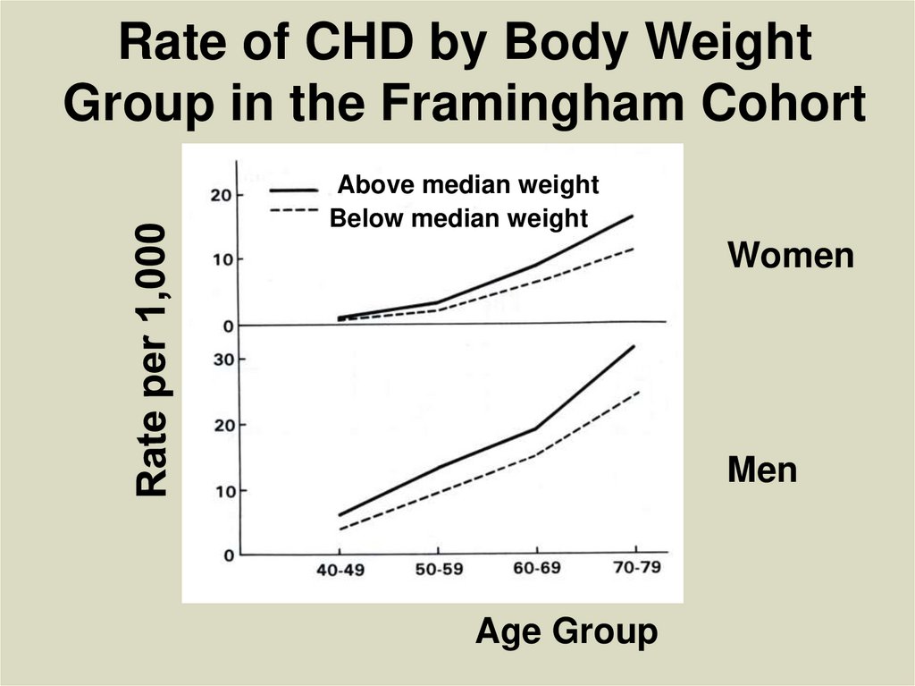 Rate of CHD by Body WeightGroup in the Framingham Cohort