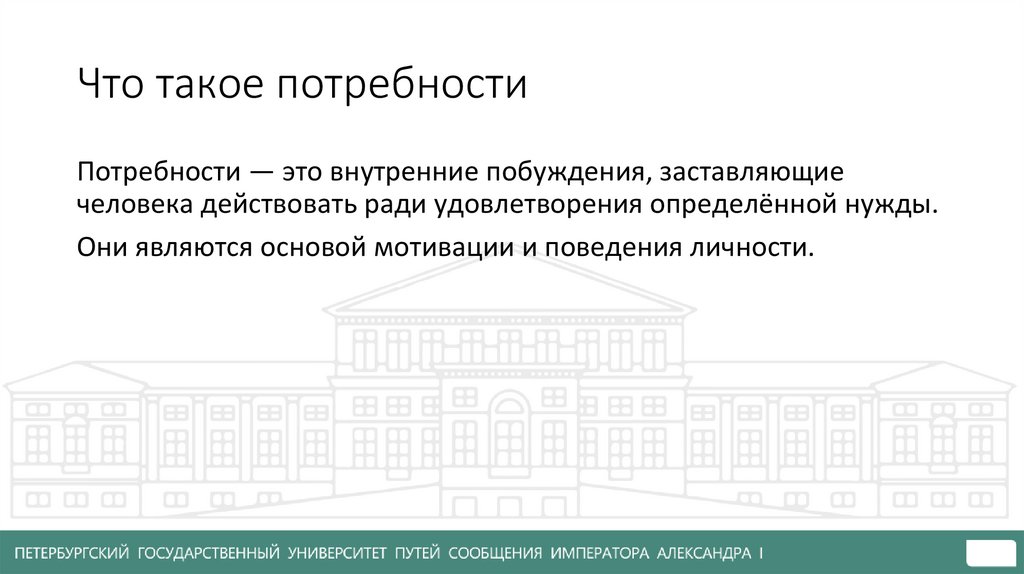 Что такое потребностиПотребности — это внутренние побуждения, заставляющие