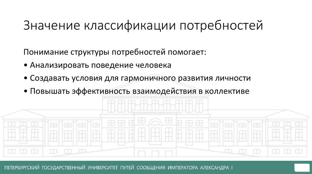 Значение классификации потребностейПонимание структуры потребностей помогает: