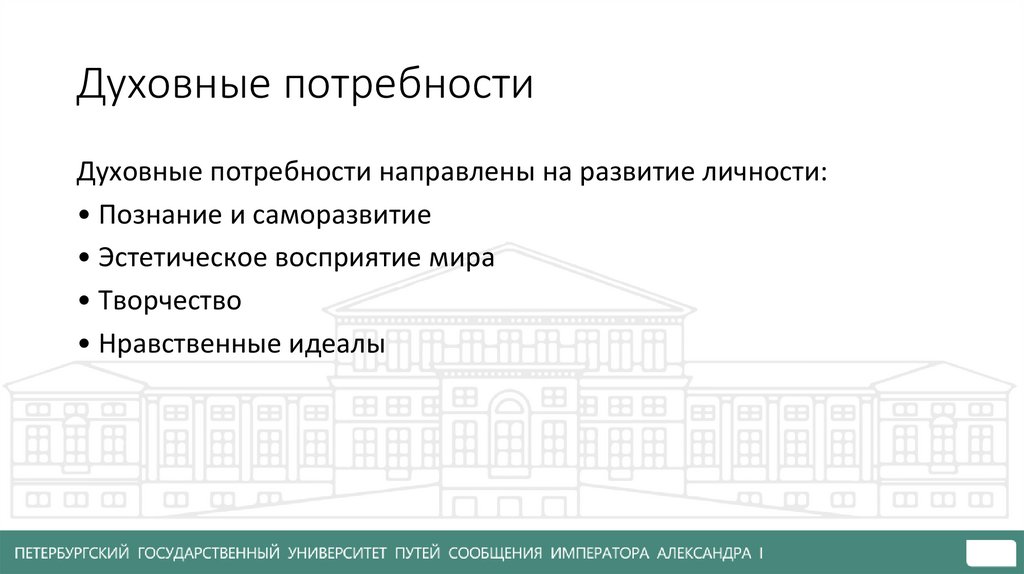 Духовные потребностиДуховные потребности направлены на развитие личности: