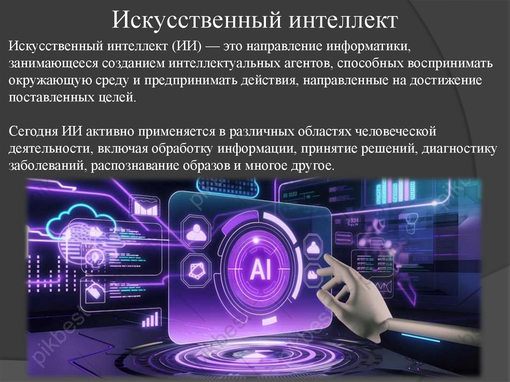 Искусственный интеллектИскусственный интеллект (ИИ) — это направление информатики,