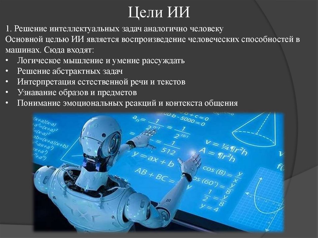 Цели ИИ1. Решение интеллектуальных задач аналогично человеку