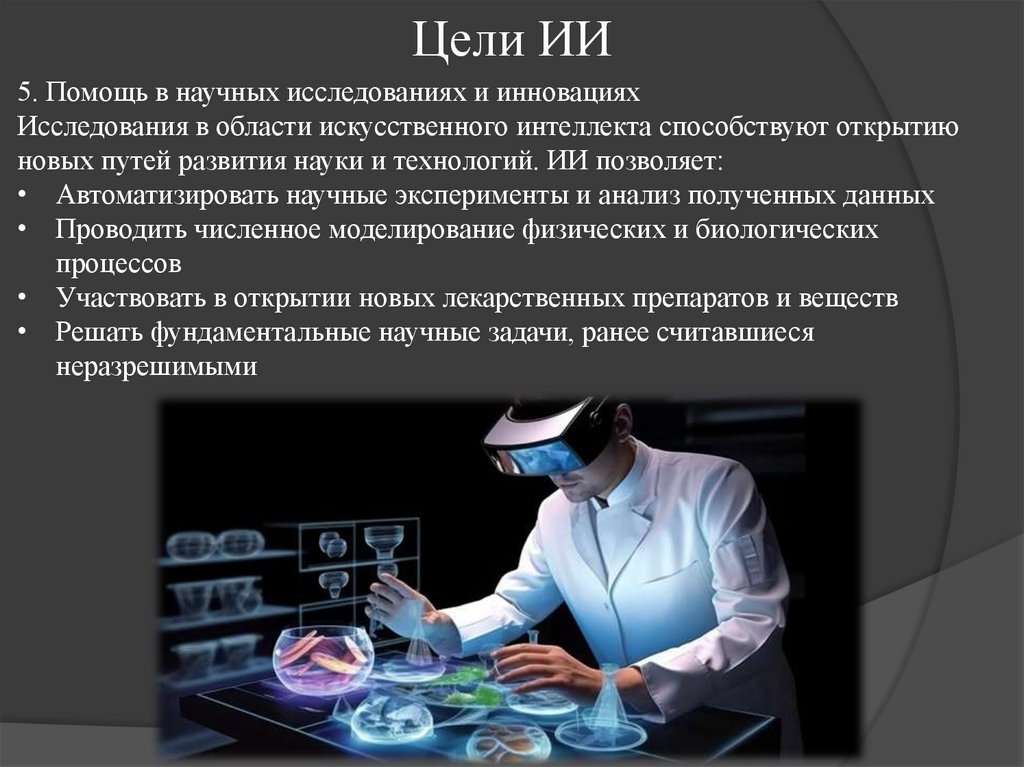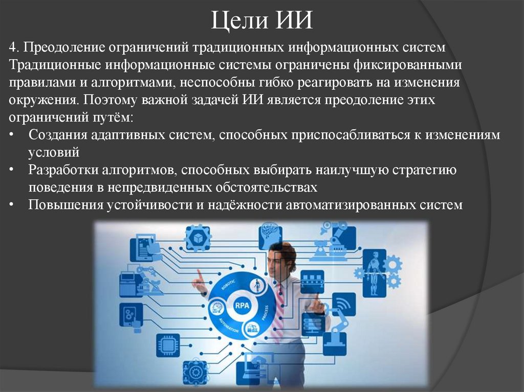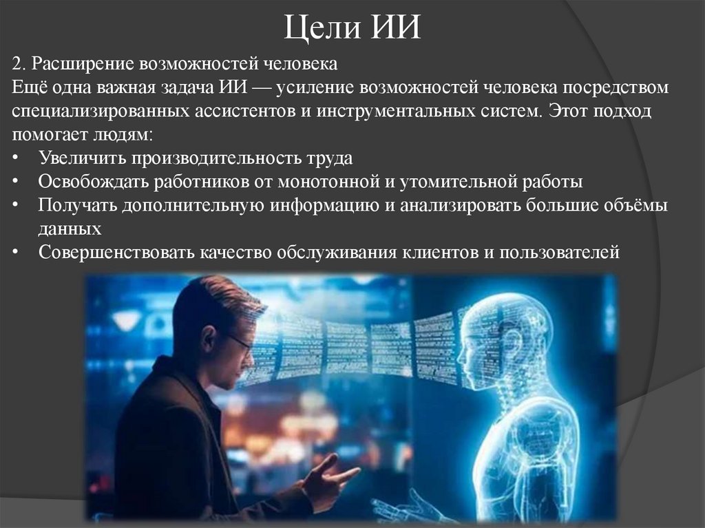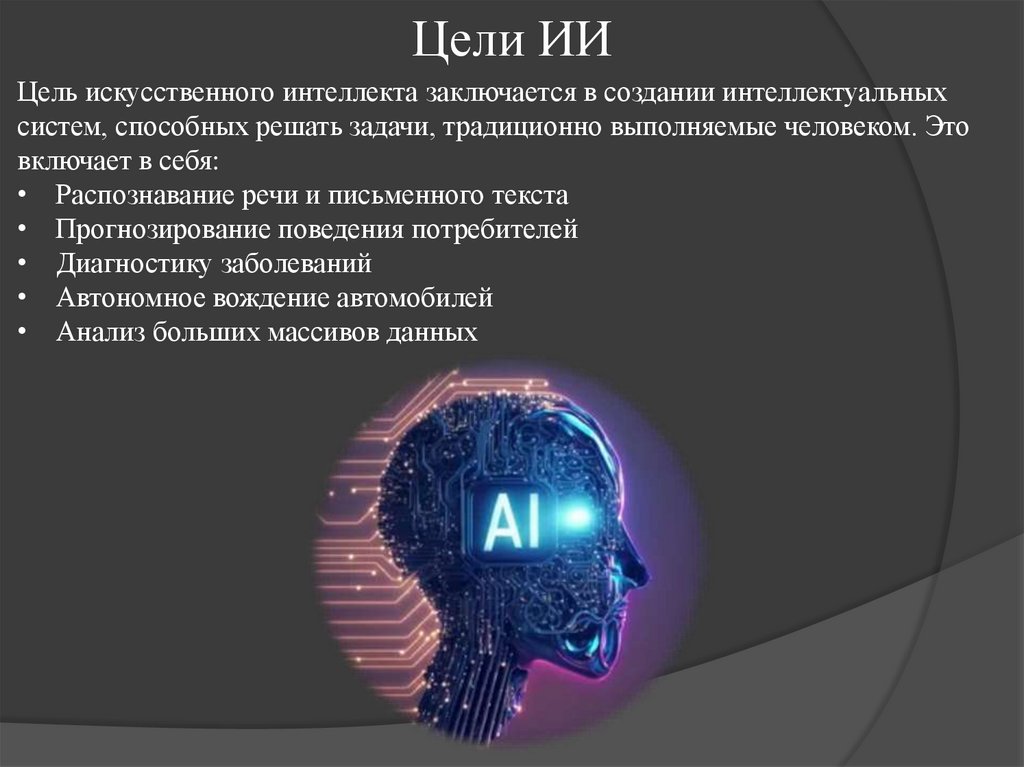 Цели ИИИскусственный интеллект (ИИ) ставит перед собой амбициозные задачи,