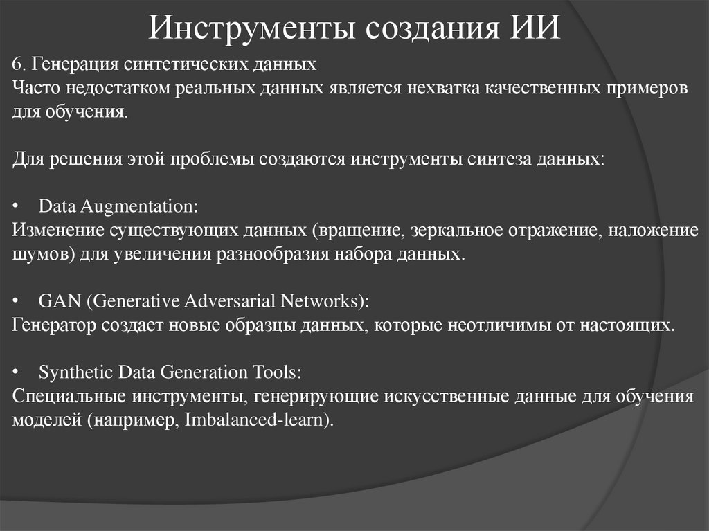 Специальные инструменты, генерирующие искусственные данные для обучения