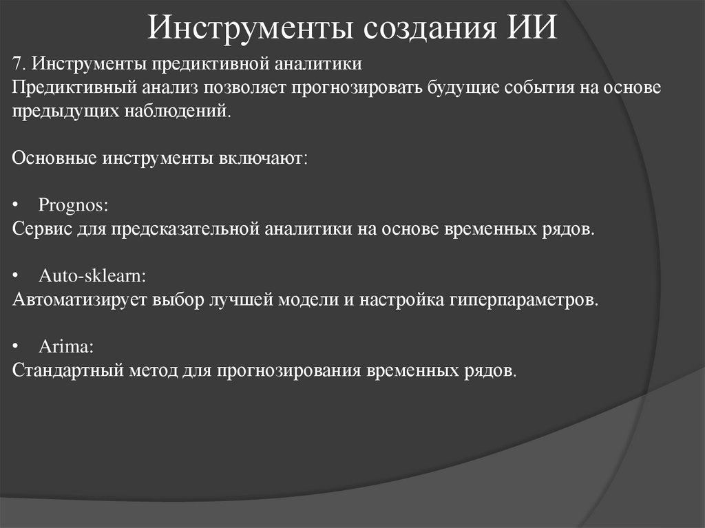 Инструменты создания ИИ7. Инструменты предиктивной аналитики