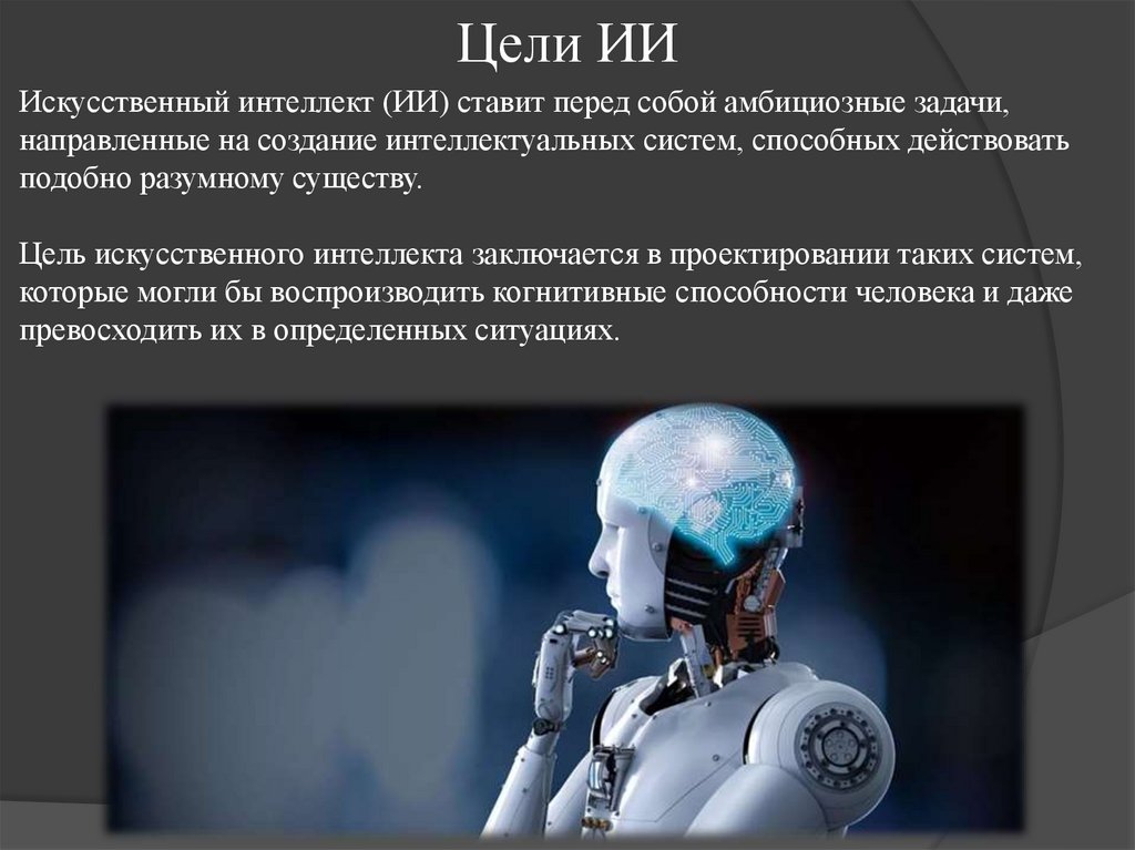 Цели ИИЦель искусственного интеллекта заключается в создании интеллектуальных