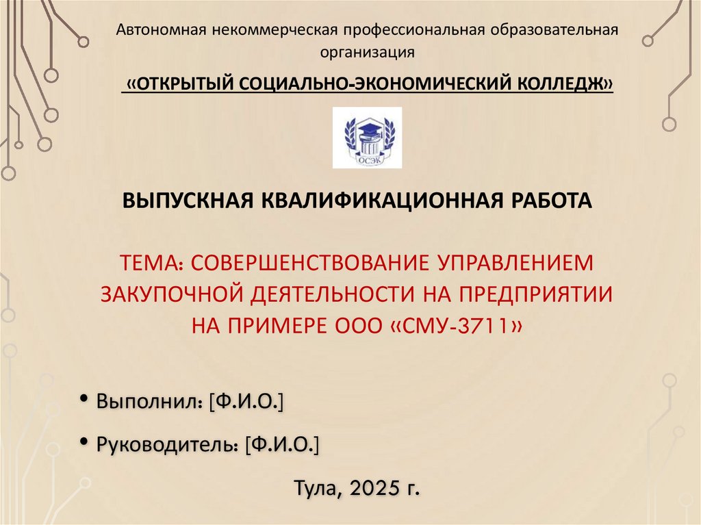 1. ВЫПУСКНАЯ КВАЛИФИКАЦИОННАЯ РАБОТА тема: Совершенствование управлением закупочной деятельности на предприятии на примере ООО
