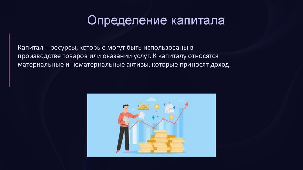 Определение капиталаКапитал – ресурсы, которые могут быть использованы в