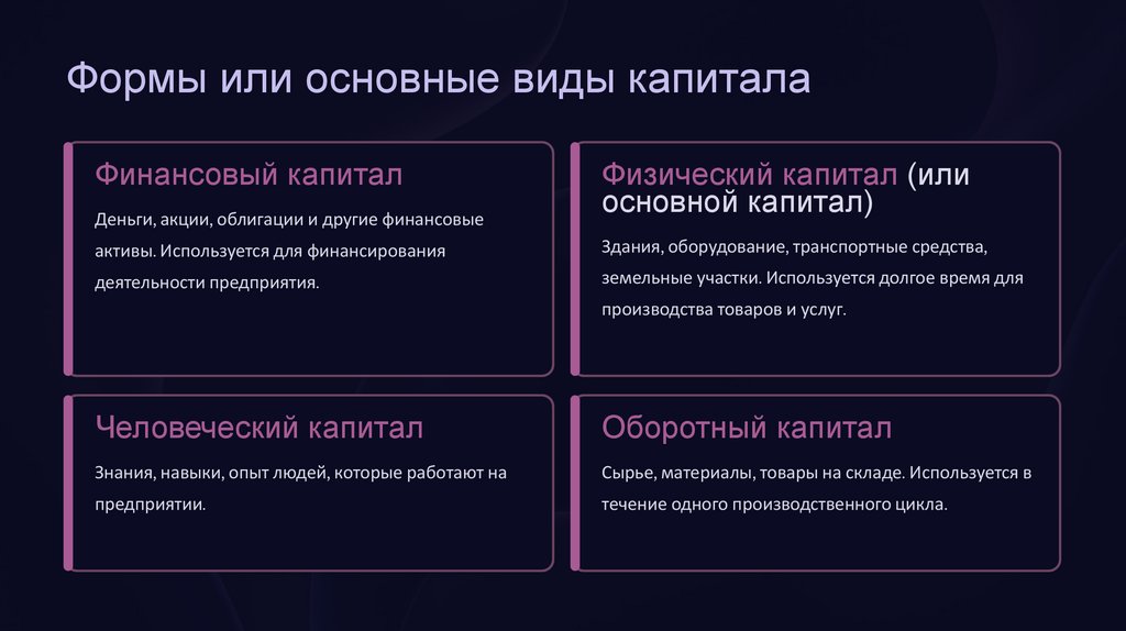 формы капитала и уметь эффективно ими управлять.