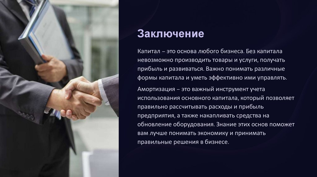 ЗаключениеКапитал – это основа любого бизнеса. Без капитала
