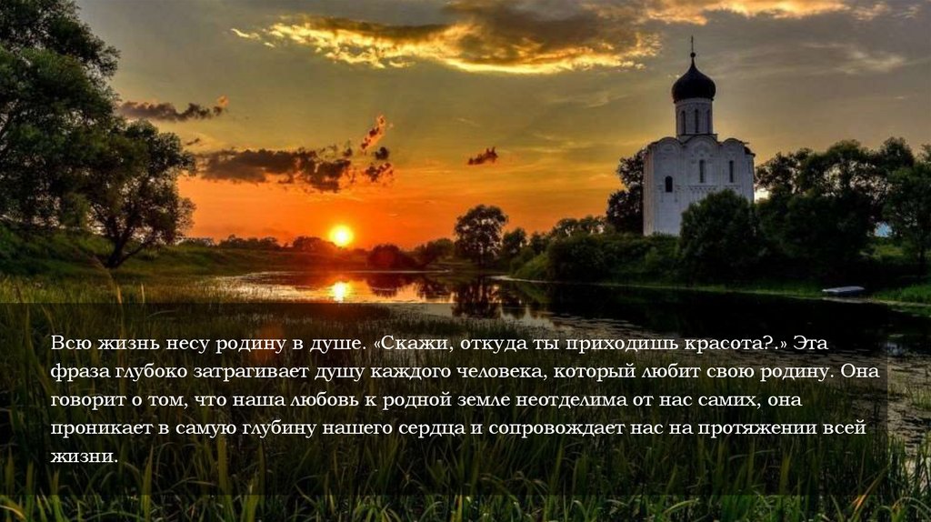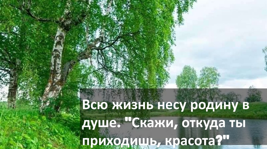 Всю жизнь несу родину в душе. «Скажи, откуда ты приходишь красота?.» Этафраза глубоко затрагивает душу каждого человека, который любит свою родину. Она