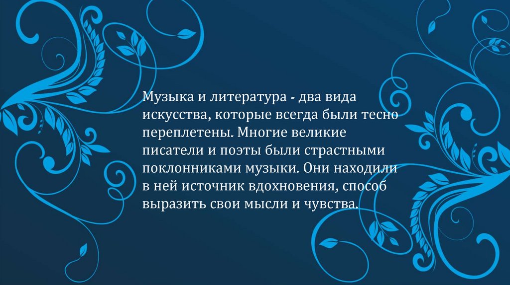 Музыка и литература - два видаискусства, которые всегда были тесно