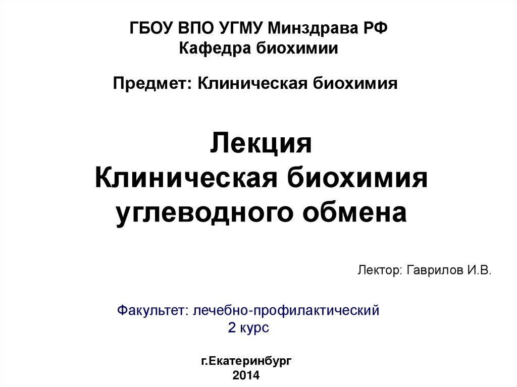 ГБОУ ВПО УГМУ Минздрава РФКафедра биохимии